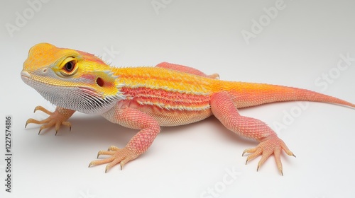 © OnuTH, Naklejka premium Vibrant Bearded Dragon Lizard on White Background with Detail