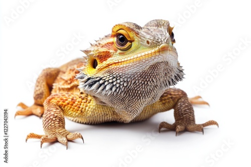 © Zahra, Obraz premium Vibrant Bearded Dragon on White