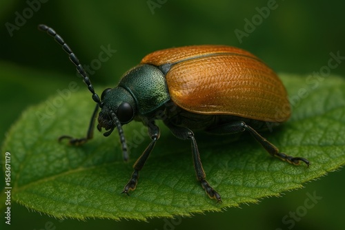© Rawpixel.com, Naklejka premium Vibrant beetle on green leaf.