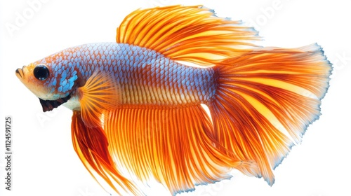 © Anakada, Fototapeta premium Vibrant Betta Fish with Striking Blue and Orange Fins Swimming Elegantly in Clear Water