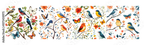 Fototapeta premium Vibrant Bird and Butterfly Nature Illustration