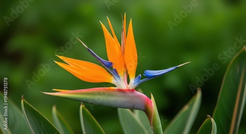 © Kormula, Obraz premium Vibrant Bird of Paradise Flower in Lush Green Setting.