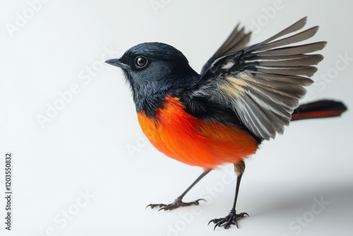 © Zahra, Fototapeta premium Vibrant bird with orange breast, black back, and spread wings.