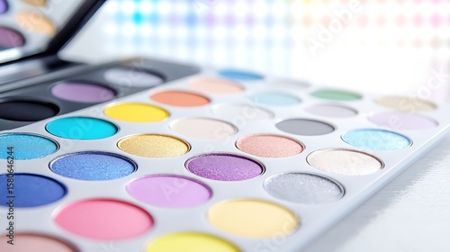 © Kalyarat Mnakla, Naklejka premium Vibrant Black Eyeshadow Palette with Holographic Stickers and Colors