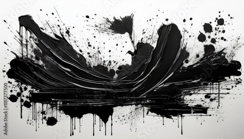 © netsay, Obraz premium Vibrant Black Ink Stencils Paintbrush, Splash, Spray, Ink Splatter and Paint Marks on a Dark Canvas, Showcasing Artistic Expression through Ink