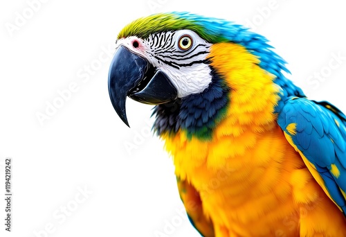 © DimSet, Obraz premium Vibrant Blue and Gold Macaw Parrot Close Up