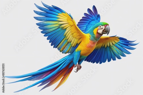 © Adisorn, Obraz premium Vibrant blue and gold macaw spreads its magnificent wings, showcasing stunning rainbow hues as it takes flight, soaring away with grace and freedom.