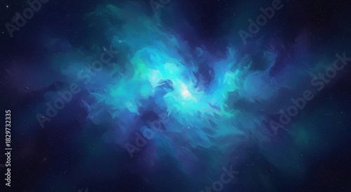 Fototapeta premium Vibrant blue and green cosmic nebula with stars