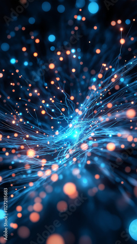 Fototapeta premium Vibrant blue and orange abstract light particles in motion