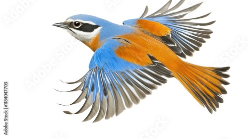 © AI_Nusantara, Obraz premium Vibrant Blue and Orange Bird in Flight