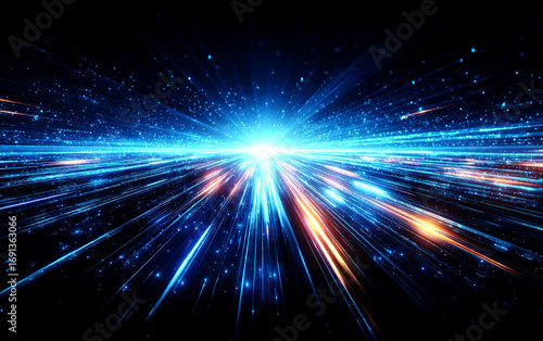 Obraz premium Vibrant blue and orange light beams radiating in a futuristic space