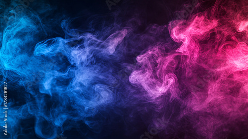 Fototapeta premium Vibrant blue and pink smoke swirls dance dynamically in dark abstract background