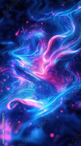 Obraz premium Vibrant blue and purple liquid waves with neon light reflection