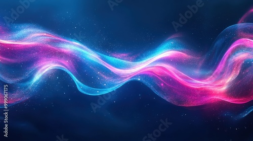 Fototapeta premium Vibrant blue and purple liquid waves with neon light reflection