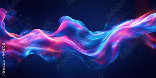 Fototapeta premium Vibrant blue and purple liquid waves with neon light reflection