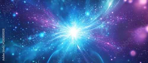 Fototapeta premium Vibrant blue and purple nebula with bright central star burst, cosmic background with sparkling stars and glowing energy, concepts of space, universe, astronomy, and science fiction