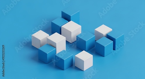 © Fiza, Obraz premium Vibrant blue and white cubes arranged in dynamic modern pattern