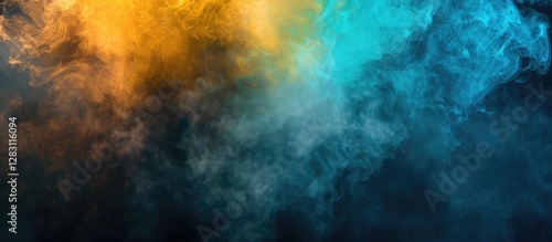 © meristock, Obraz premium Vibrant blue and yellow steam swirling against a dark background with ample space for text and design elements positioned centrally for customization