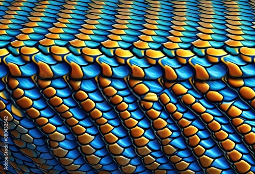 © Yaraslava, Naklejka premium vibrant blue background snake scales exotic reptile skin design, pattern, texture, nature, wildlife, colorful, shiny, iridescent, seamless, fashion, trendy