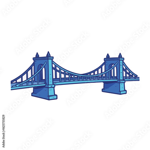 Obraz premium Vibrant blue bridge illustration on white background, architectural design