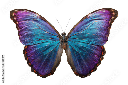 Fototapeta premium Vibrant blue butterfly display nature scene macro photography. Isolated on...