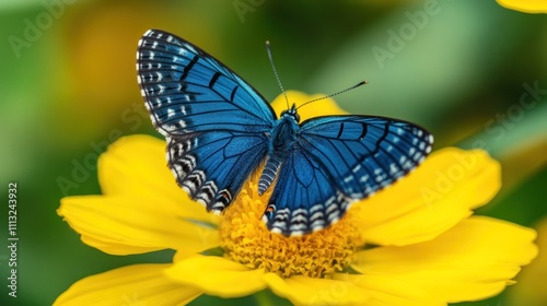 © kenza07, Fototapeta premium Vibrant Blue Butterfly on a Yellow Flower