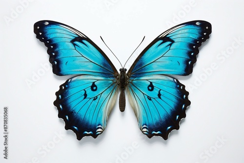© Svetlana, Fototapeta premium Vibrant Blue Butterfly with Detailed Black Patterns on White Background, Perfect for Nature and Wildlife Themes. Generative AI