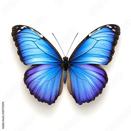 Fototapeta premium Vibrant blue butterfly with striking wings, showcasing intricate patterns and a beautiful gradient of colors.