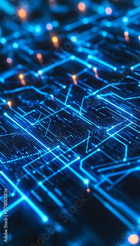 © decorator, Obraz premium Vibrant blue digital grid background with glowing effects and intricate 3d elements for tech design