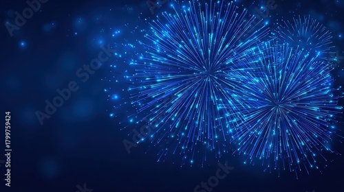 Fototapeta premium Vibrant blue fireworks burst against a dark backdrop, creating a festive and...