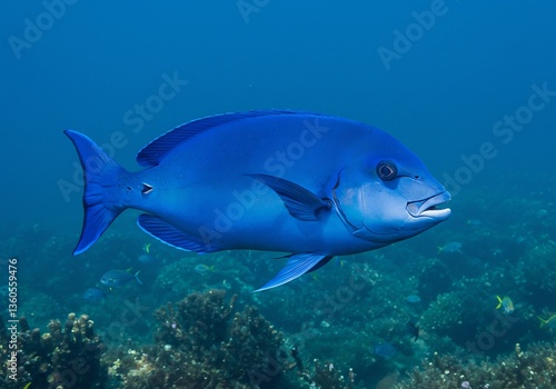 Fototapeta premium Vibrant Blue Fish Underwater Scene Tranquil Ocean Life. AI Generated