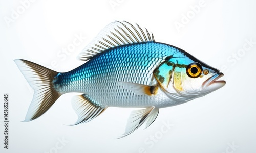Fototapeta premium Vibrant blue fish with detailed scales and fins on a white background