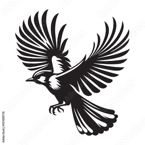Obraz premium Vibrant Blue Jay silhouette with sharp posture – Blue Jay illustration –...