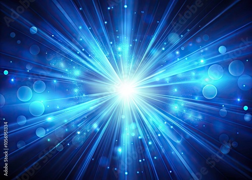 © Caitlin, Fototapeta premium Vibrant Blue Luminescent Rays on Dark Gradient Background - Abstract Glowing Banner Design with Bokeh Effect