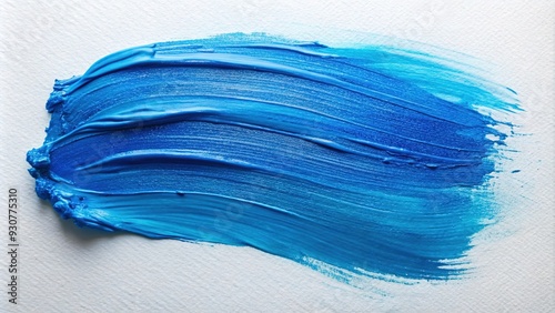 Fototapeta premium Vibrant blue paint stroke swoops across a white canvas, leaving a textured,...