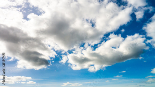 Fototapeta premium Vibrant blue sky background with white fluffy clouds taken on a warm...