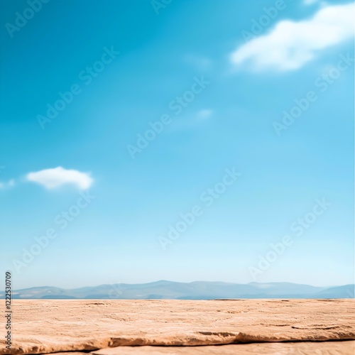 © Arthur Constantine, Fototapeta premium Vibrant Blue Sky over Golden Brown Landscape with Cloud Puffs