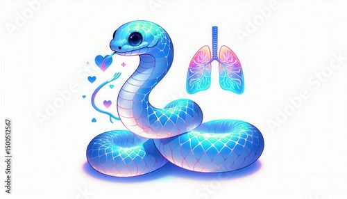 Fototapeta premium Vibrant blue snake illustration with lungs digital art whimsical style...