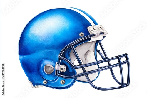Fototapeta premium Vibrant Blue Watercolor Football Helmet - A striking watercolor painting of an American football helmet, symbolizing sport, competition, strategy, victory, and teamwork