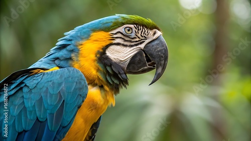© AYESHA, Fototapeta premium Vibrant blue yellow green macaw bird image
