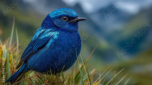 © muji, Fototapeta premium Vibrant Bluebird in Mountainous Habitat