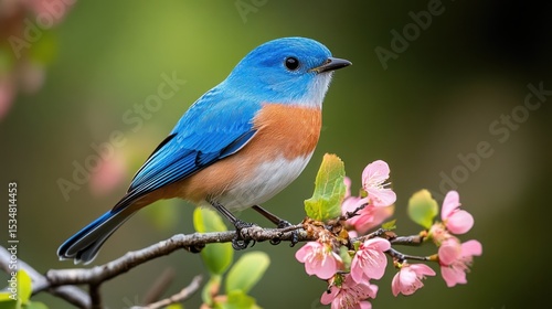 © akun, Obraz premium Vibrant bluebird perched delicately among blossoms in springtime nature scene