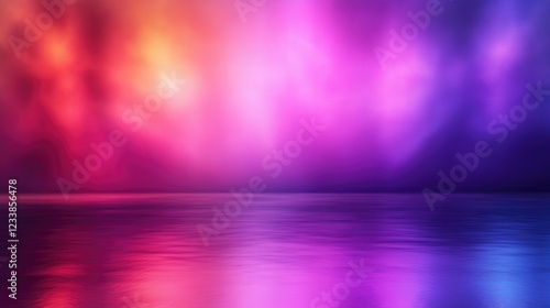 © CryptoCanvas, Fototapeta premium Vibrant Blurred Panorama of Colorful Lights Reflecting on Water Ideal for Wallpapers and Copyspace for Text