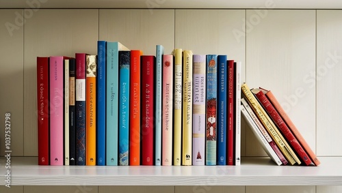 © Ahsan, Fototapeta premium Vibrant Bookshelf with Floral Accents