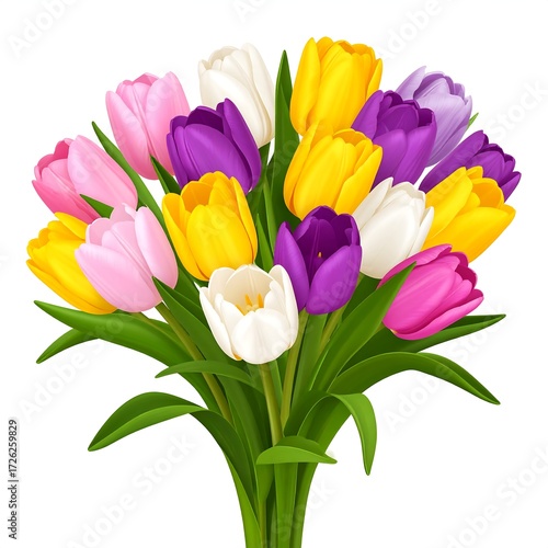 © Lapi, Naklejka premium Vibrant bouquet of multicolored tulips on white background