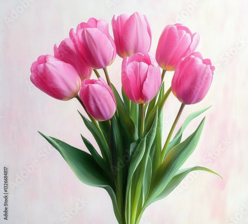 Fototapeta premium Vibrant Bouquet of Pink Tulips on Minimalist White Background