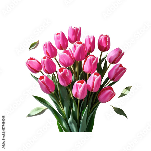 Fototapeta premium Vibrant Bouquet of Pink Tulips on Transparent Background
