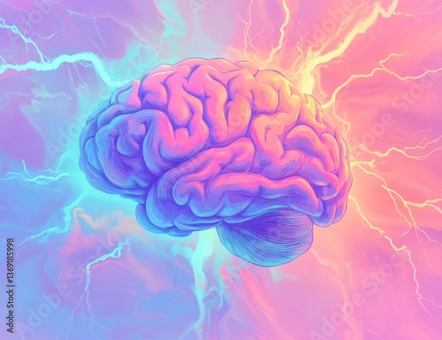 Fototapeta premium Vibrant brain amidst energetic electric aura