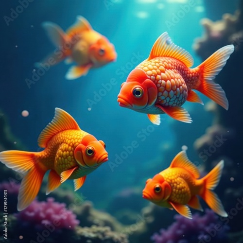 Fototapeta premium Vibrant brain fish & goldfish swim amidst blue , colorful background,...