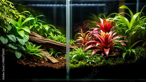 © MstEva, Obraz premium Vibrant Bromeliad Plant in Lush Indoor Garden Display